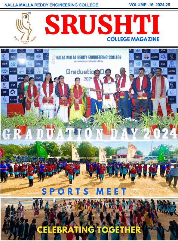 We bring you yet another issue of Srushti – the College Magazine of Nalla Malla Reddy Engineering College. This edition of Srushti presents the activities of the college and the events participated, and conducted by the students and faculty of the college.